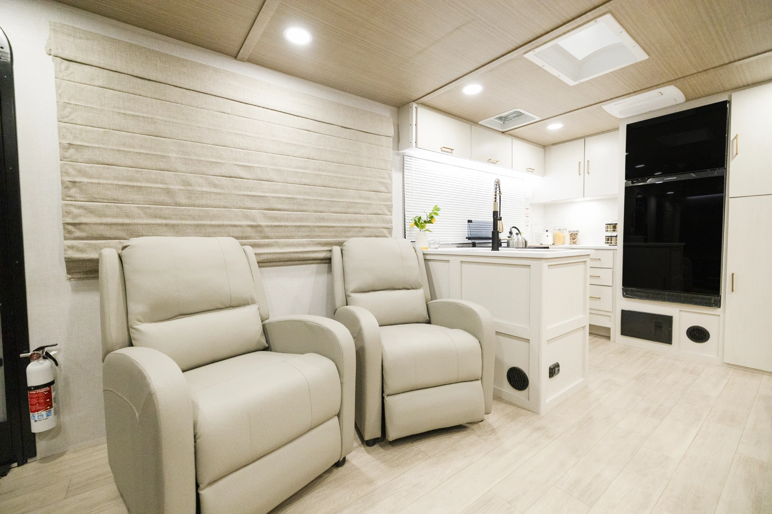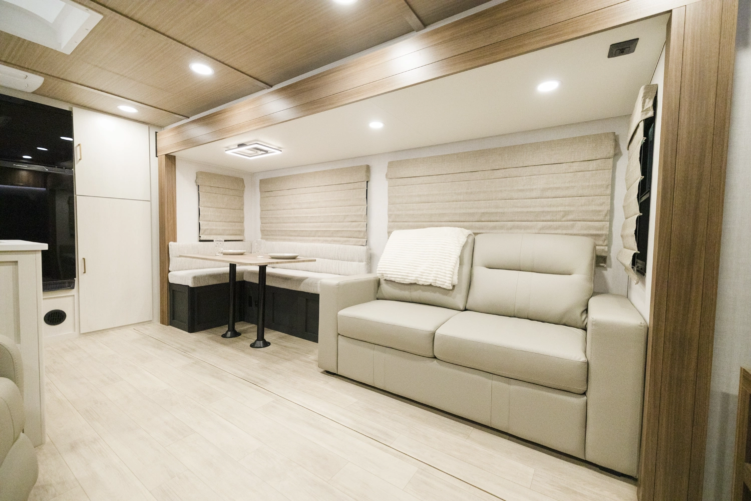 • True Flush Floor Slideouts with Fabric-Backed Shaw Linoleum
