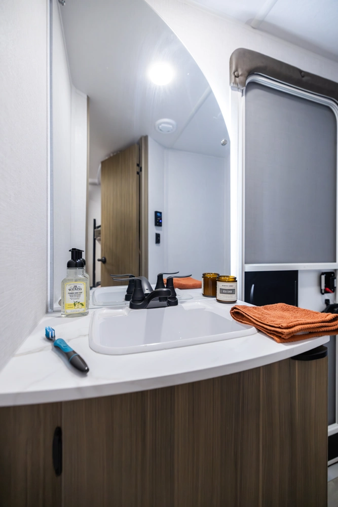 The 240BHXL weighs in at less than 6,000 lbs. for increased towability, without sacrificing any of the comfort! This double-over-double bunkhouse packs a lot of features into its 28'10” length, including a large comfy booth dinette with panoramic windows, walk-in pantry, modern kitchen with stove, cooktop, microwave, and an oversized refrigerator! The bathroom provides a walk-in shower with skylight and a convenient second door to the outside.
